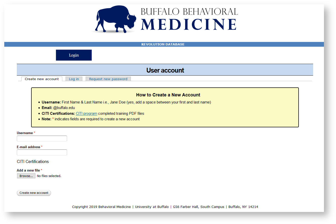 Log-In Page: revolution.med.buffalo.edu